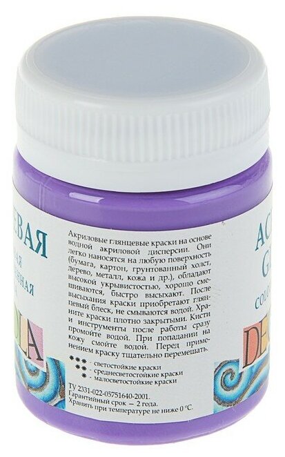 Краска акриловая Decola, 50 мл, фиолетовая, Shine, глянцевая./ В упаковке: 1 интересное: