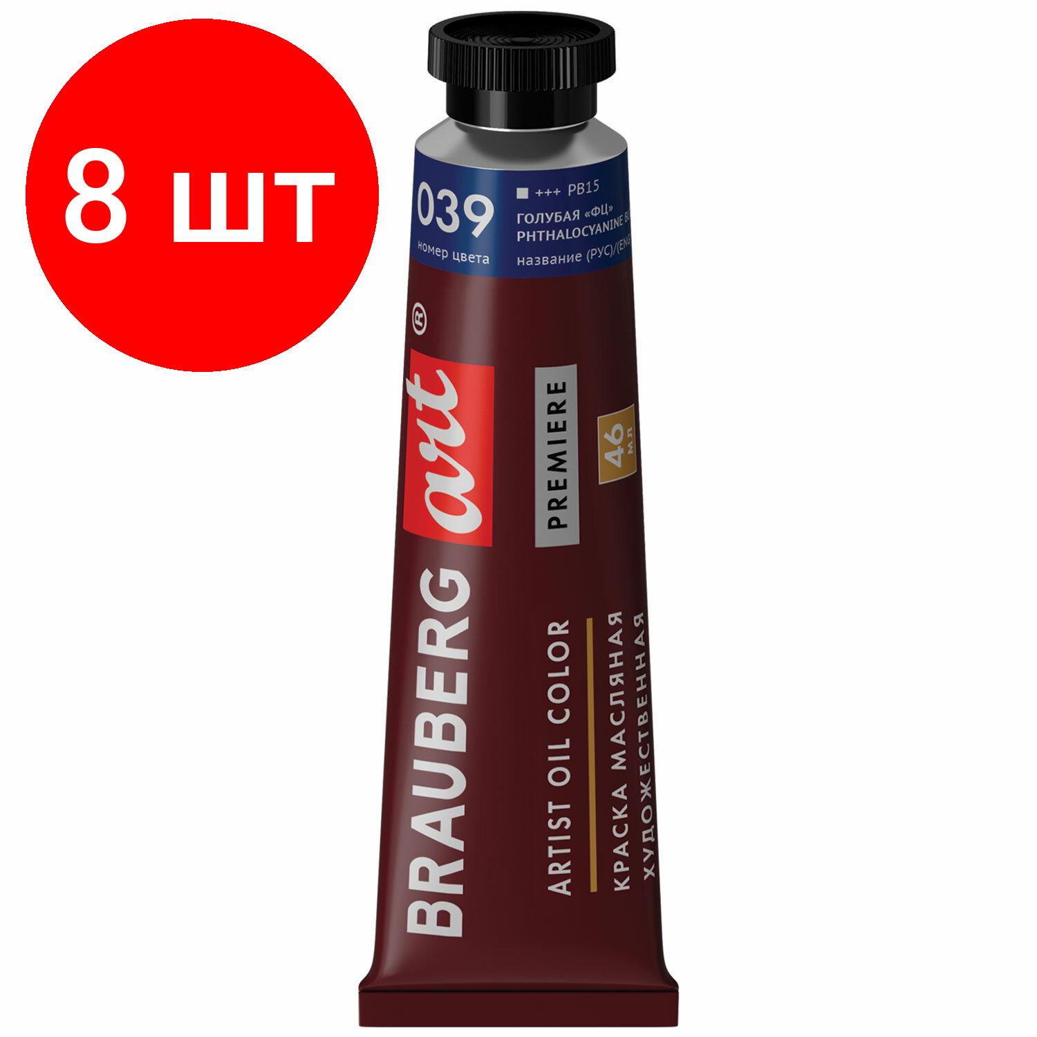 Краска масляная художественная BRAUBERG ART PREMIERE, 46 мл, проф. серия, голубая "ФЦ", 191417