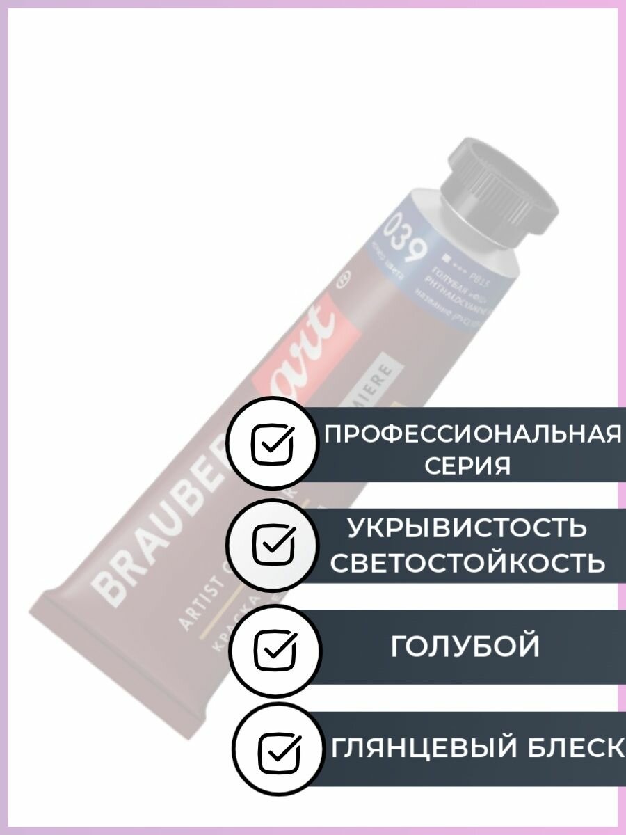 Краска масляная художественная Brauberg ART PREMIERE, 46 мл, проф. серия, небесно-голубая, 191414