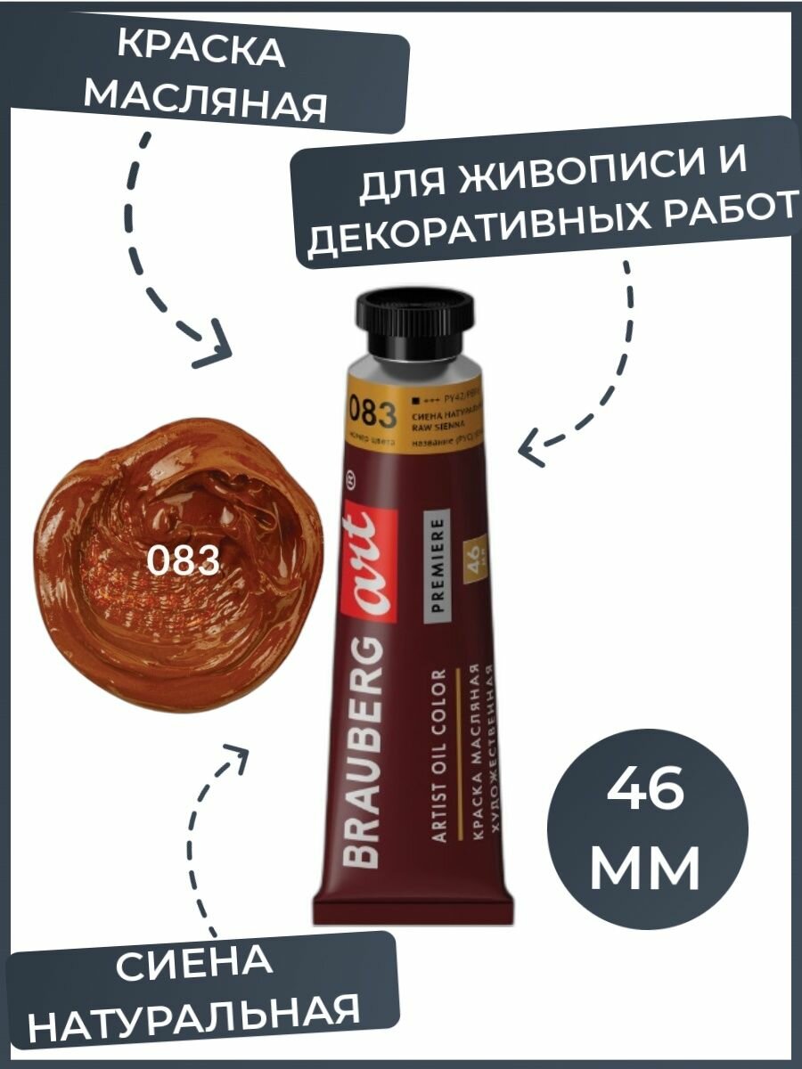 Краска масляная художественная BRAUBERG ART PREMIERE, 46 мл, проф. серия, сиена натуральная, 191439 Комплект - 3 шт.