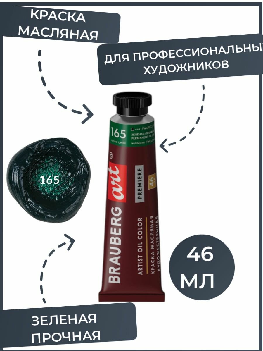 Краска масляная художественная Brauberg ART PREMIERE, 46 мл, проф. серия, зеленая темная, 191428