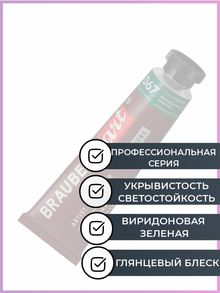 Краска масляная художественная BRAUBERG ART PREMIERE, 46 мл, проф. серия, виридоновая зеленая 191429 В комплекте: 3шт.
