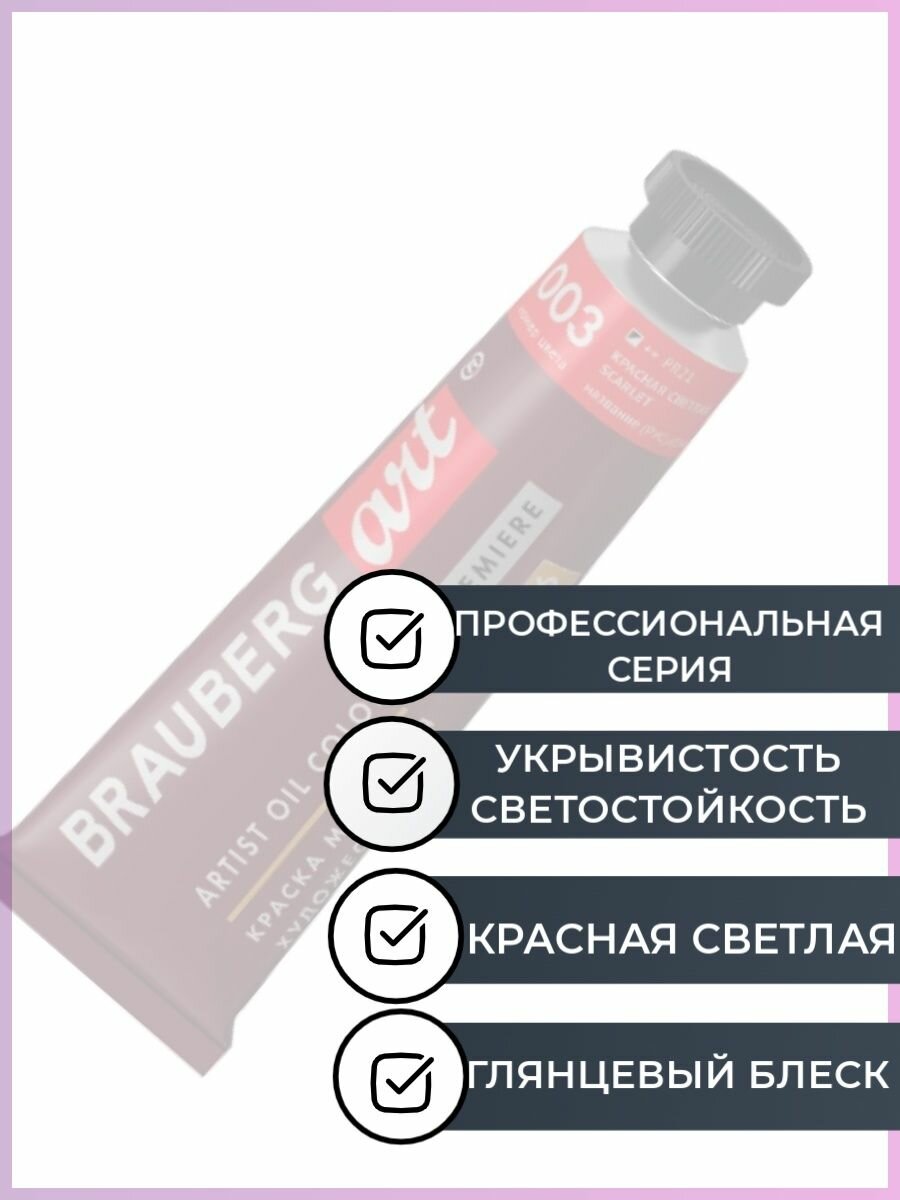 Краска масляная художественная BRAUBERG ART PREMIERE, 46 мл, проф. серия, красная светлая, 191407