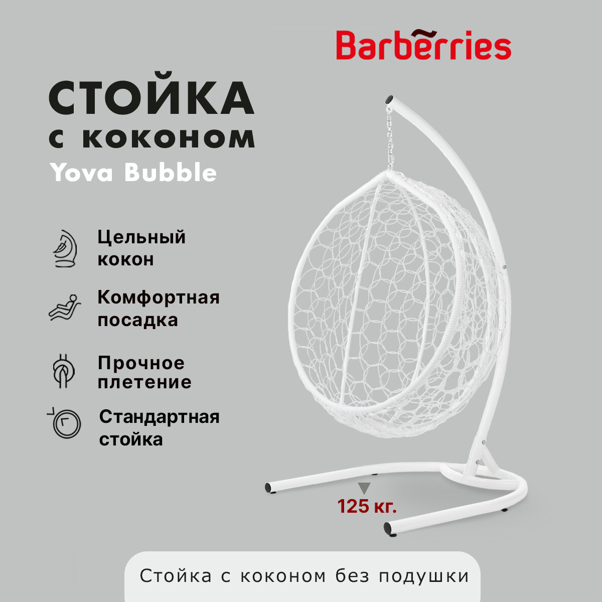 Подвесное кресло кокон садовое Barberries Yova Bubble. Стойка белая до 125 кг, подушка трапеция черная