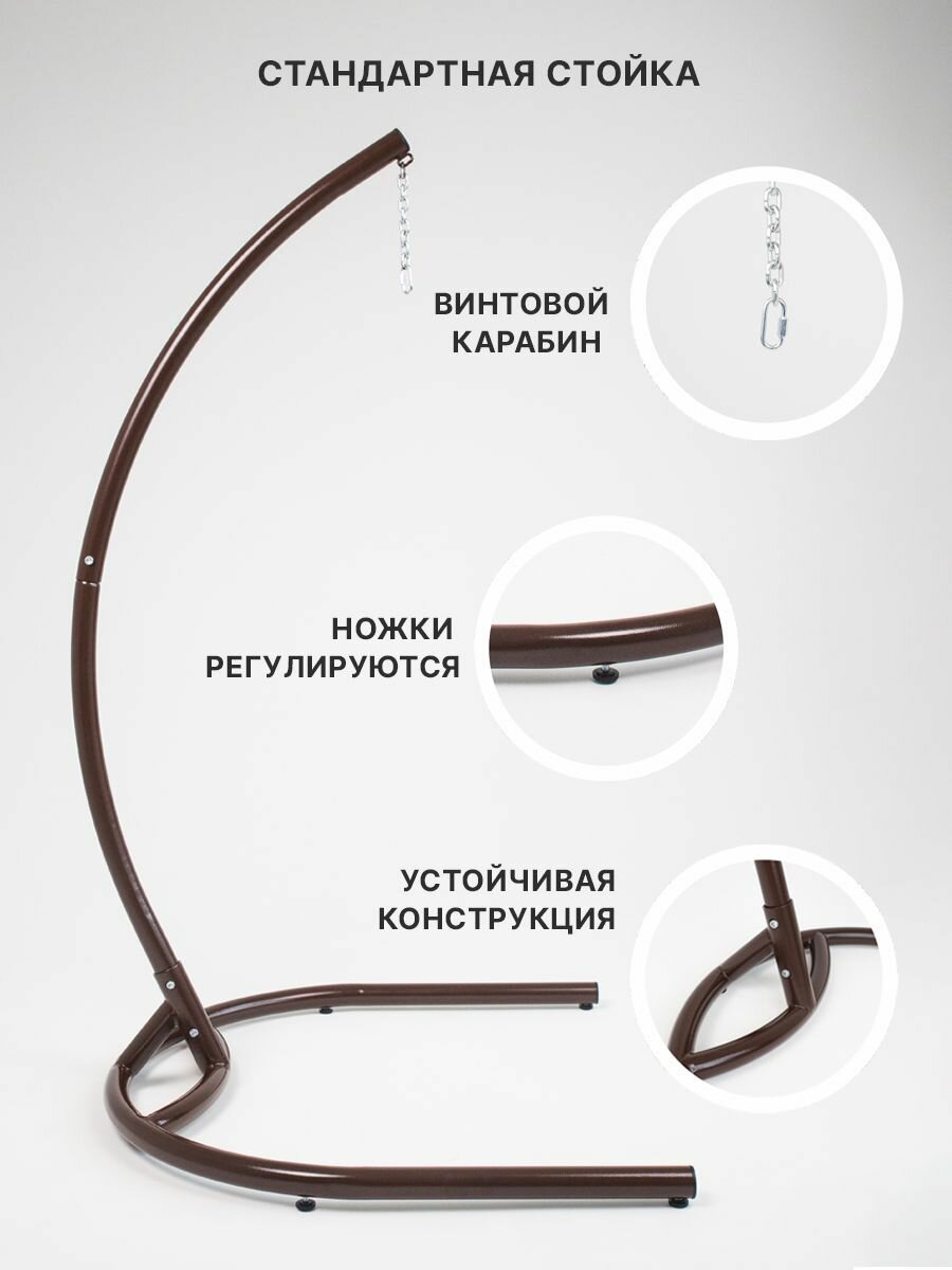 Подвесное кресло кокон садовое Barberries Yova Bubble. Стойка белая до 125 кг, подушка трапеция коричневая