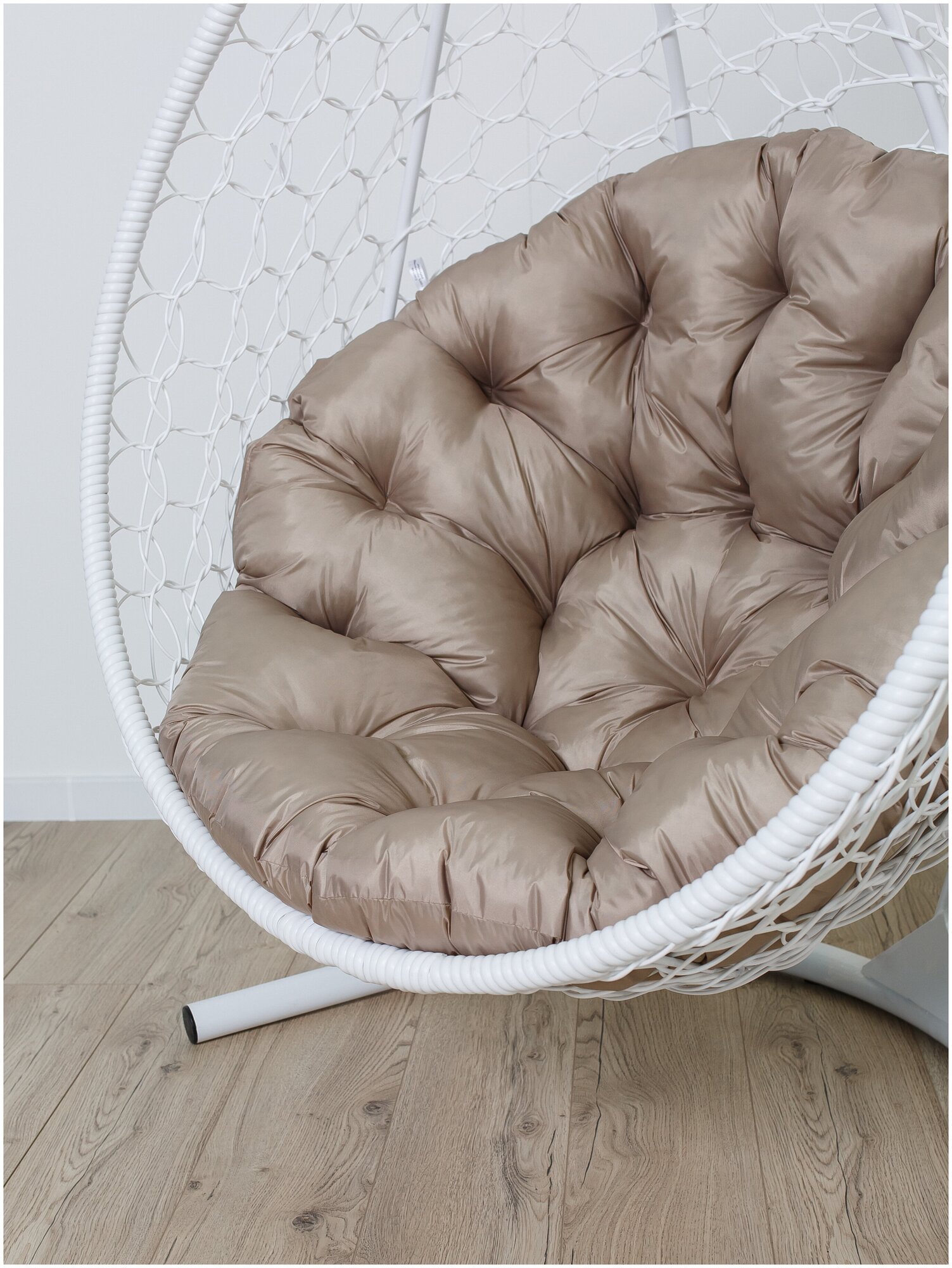 Подвесное кресло кокон STULER Plaint Ажур белый 100х63х175 для дачи и сада садовое кресло с круглой коричневой подушкой
