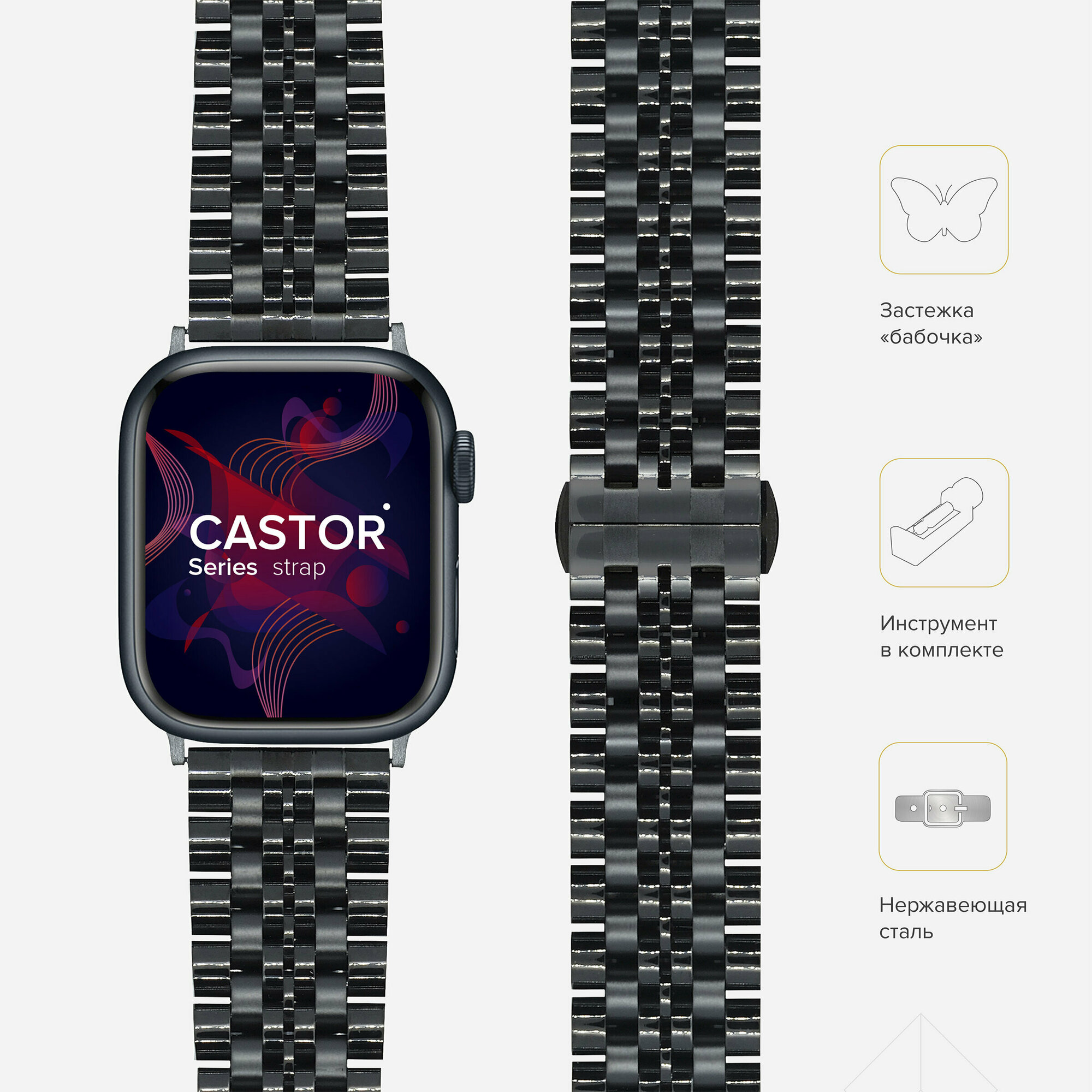 Ремешок из нержавеющей стали для Apple Watch 38/40/41 mm LYAMBDA CASTOR Черный