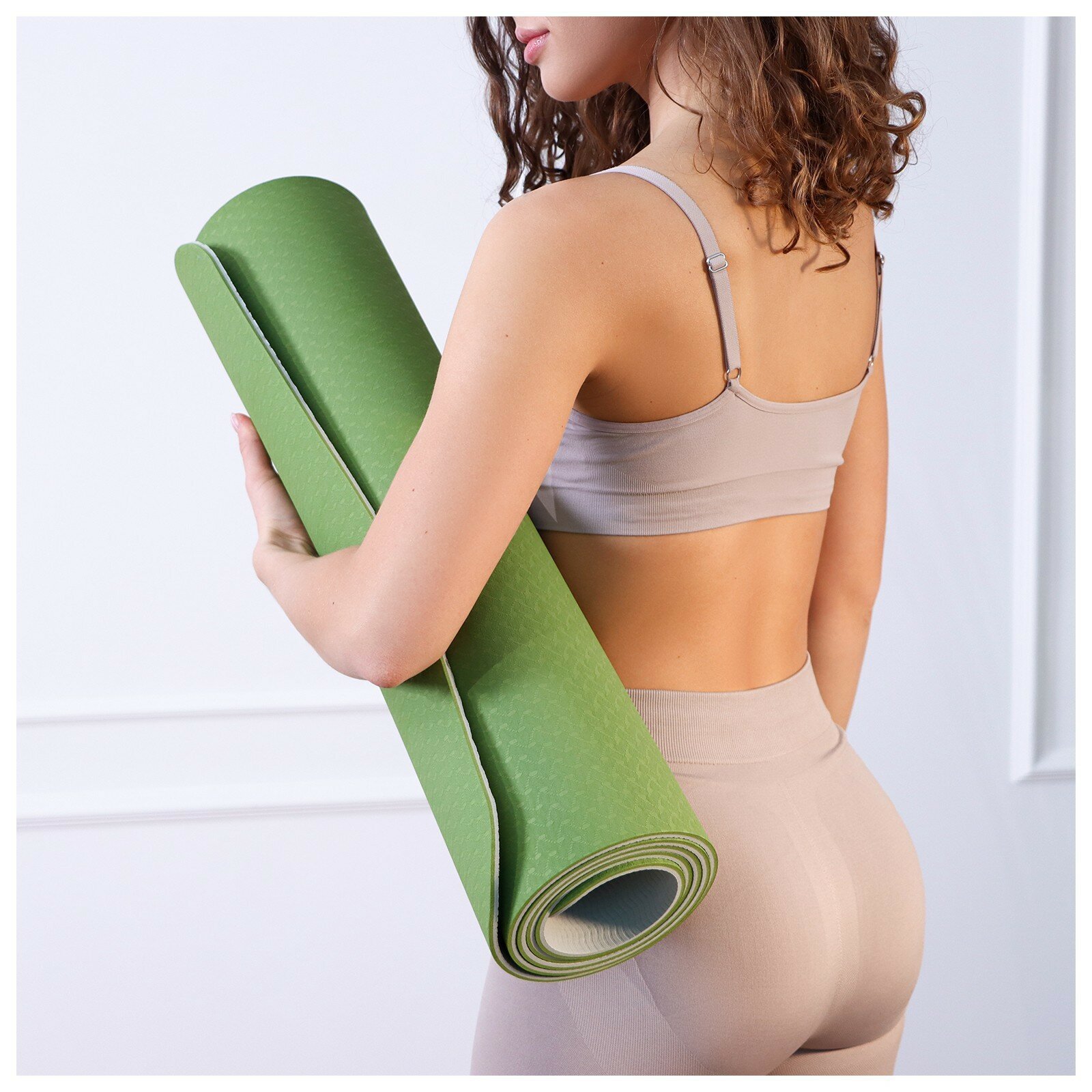 Коврик для йоги 183 × 61 × 0,6 см, двухцветный, цвет зелёный