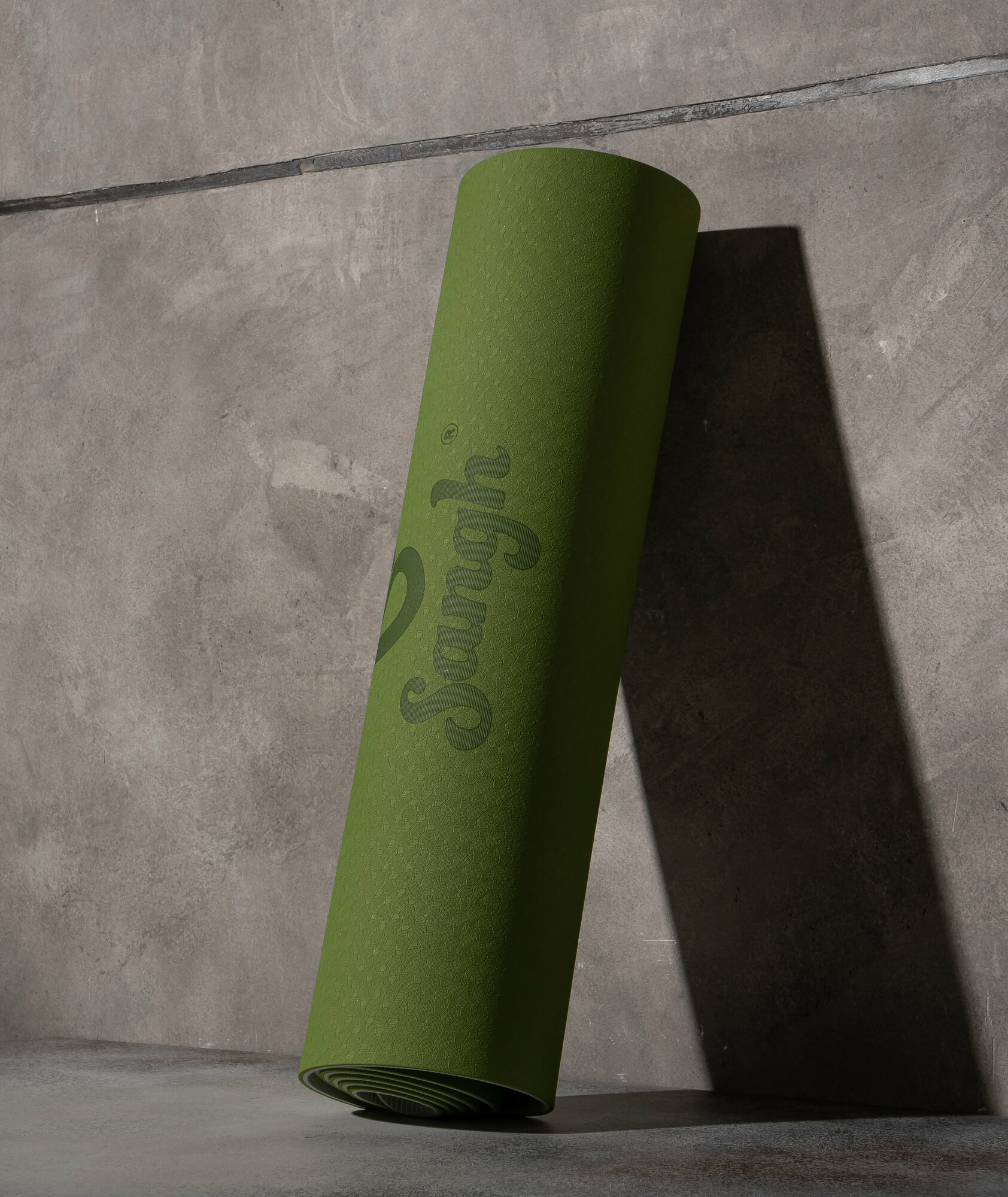 Sangh Коврик для йоги 183 × 61 × 0,6 см, двухцветный, цвет тёмно-зелёный