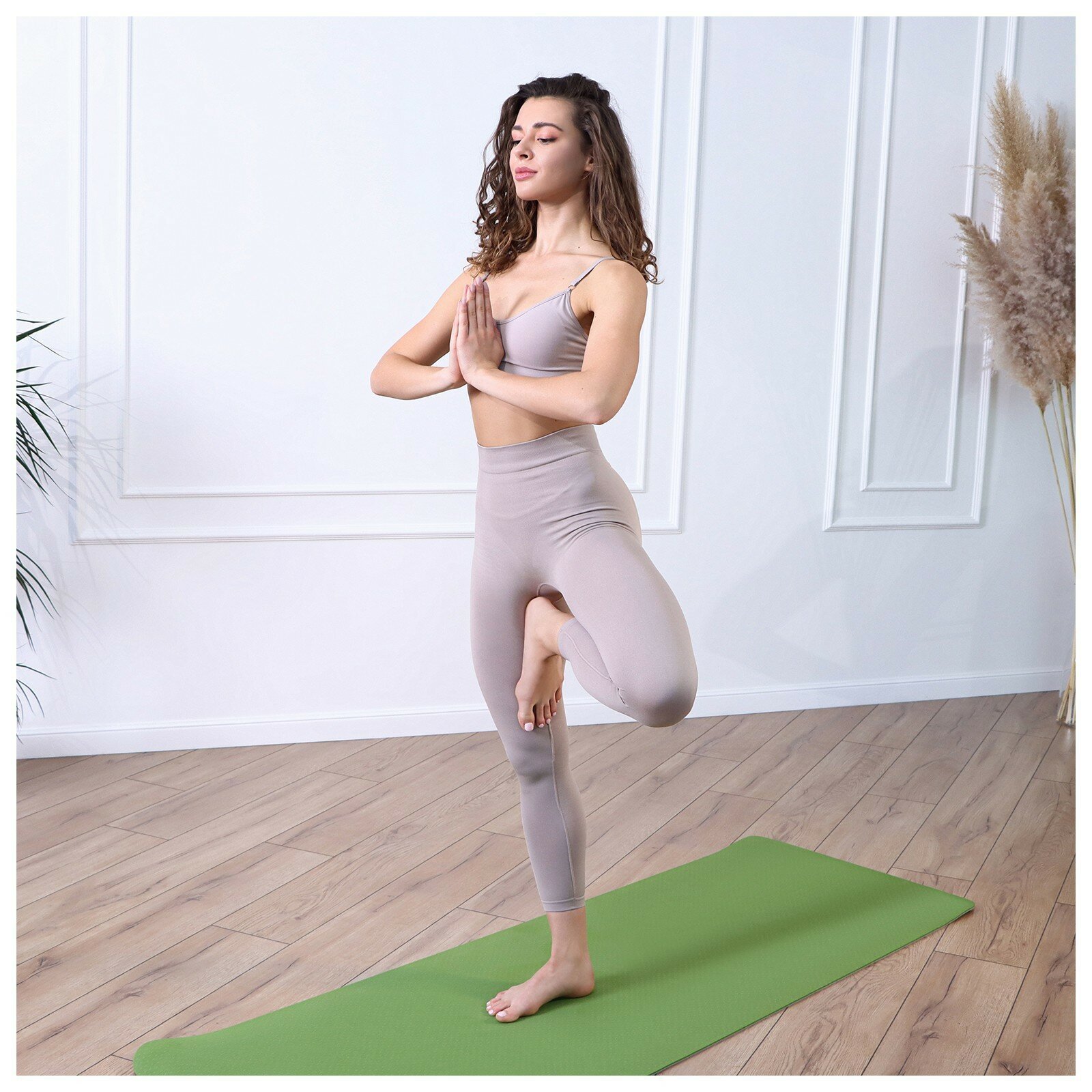 Коврик для йоги Sangh, нескользящий, 183×61×0.6 см, цвет тёмно-зелёный (комплект из 2 шт)