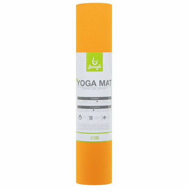 Коврик для йоги Sangh, нескользящий, 183×61×0.6 см, цвет оранжевый