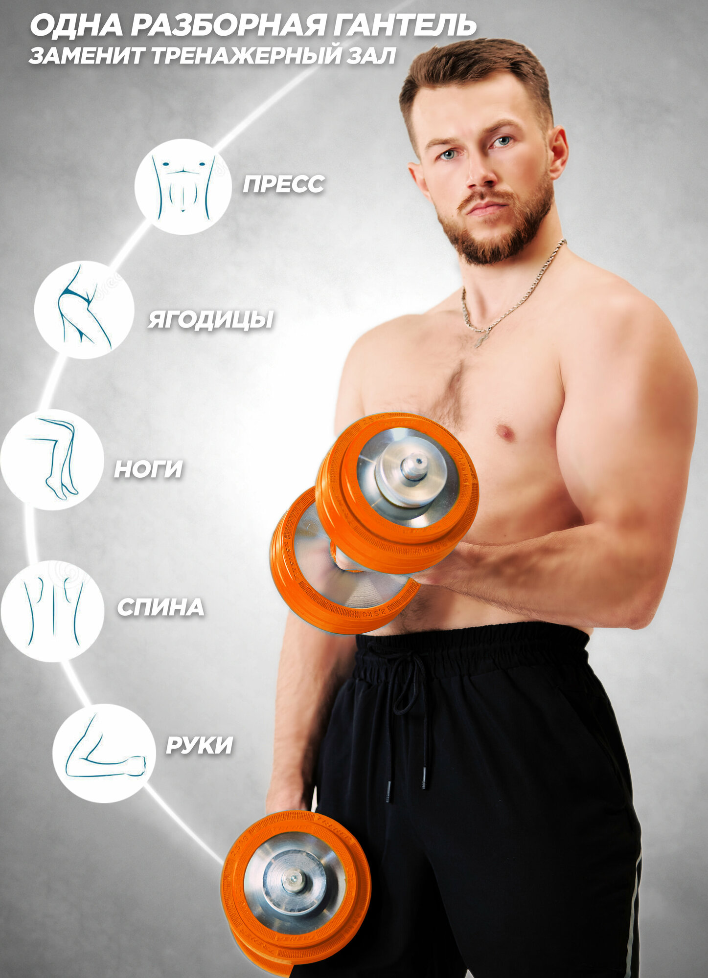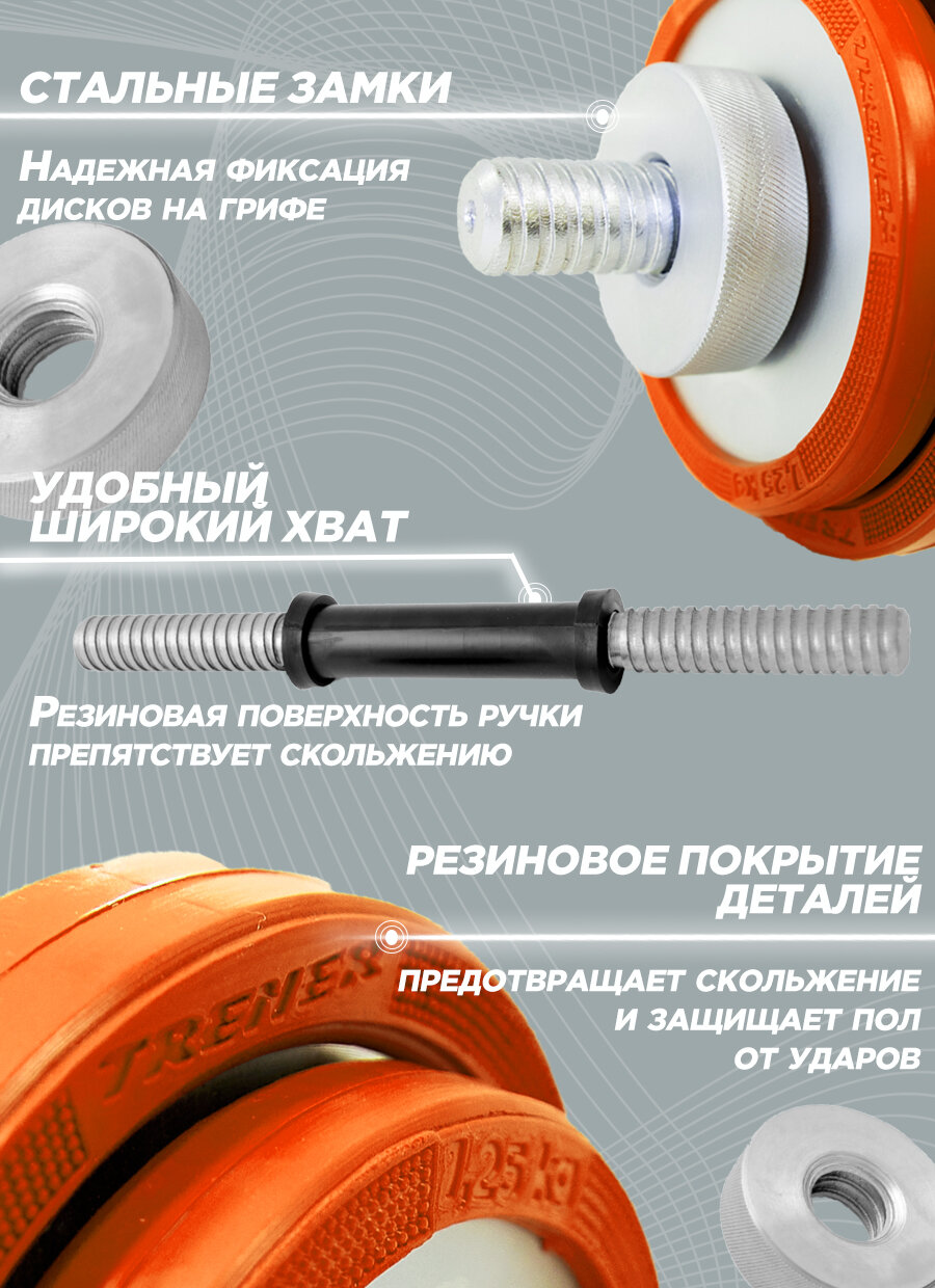 Гантель наборная обрезиненная TRENER TRG01 15 КГ цвет серебристый оранжевый