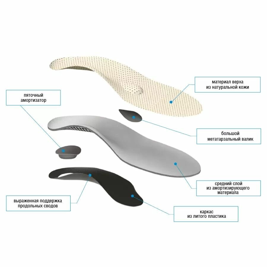 Стельки каркасные кожа с разгрузкой пятки для высокого свода продольно поперечные talus Польза 49К (40)