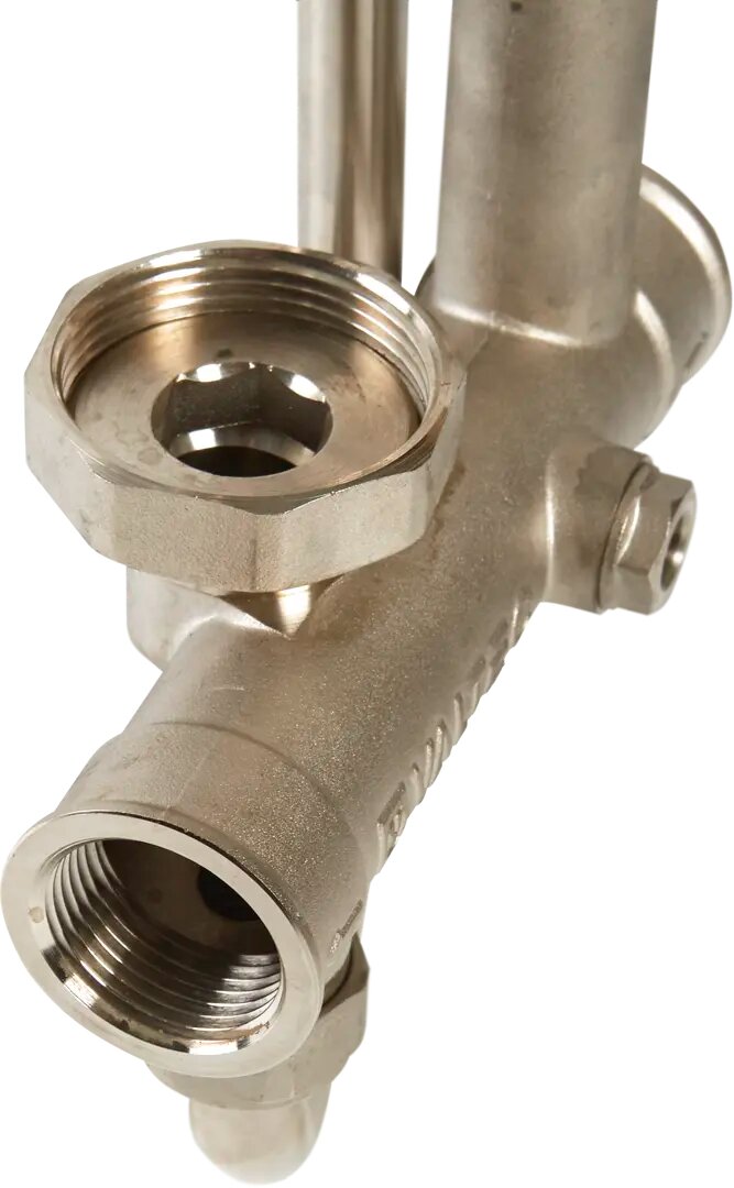 | Комплектация | термостатический клапан, термоголовка с выносным датчиком, балансировочный клапан вторичного контура, балансировочный клапан первичного контура, термометр, дренажный кран, гильза для датчика температуры, накидные гайки для присоединения насоса в комплекте с прокладками, ручной воздухоотводчик |
