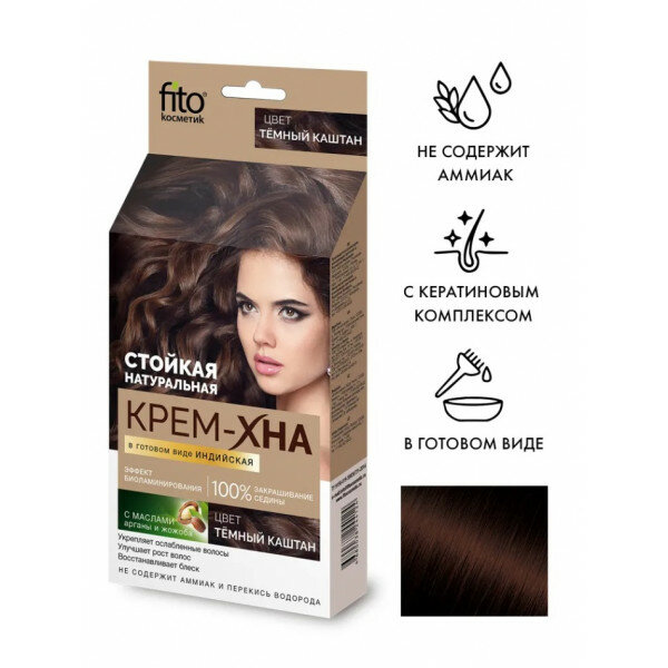 Купить Крем-Хна Индийская Fito Косметик в готовом виде, Темный каштан, 50 мл