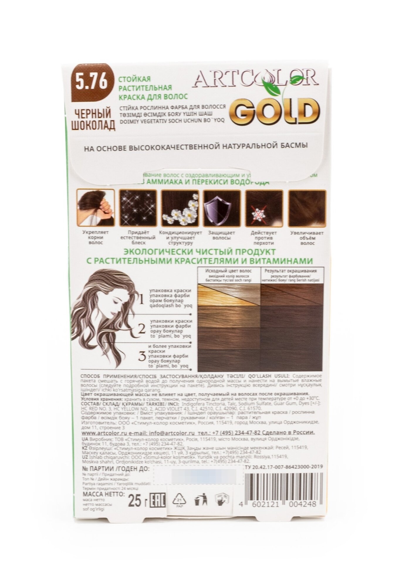 Артколор Gold Краска для волос тон 5.76 черный шоколад на основе натуральной хны без аммиака 25г / красящее средство