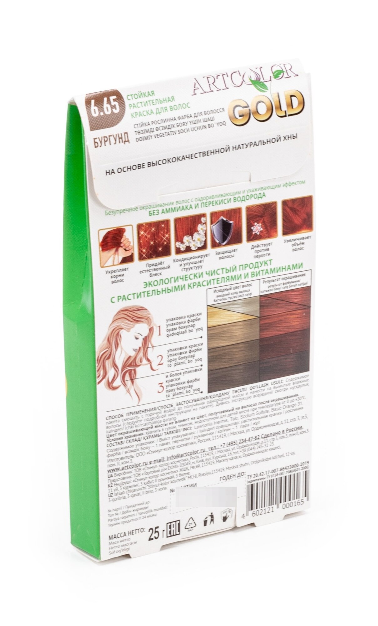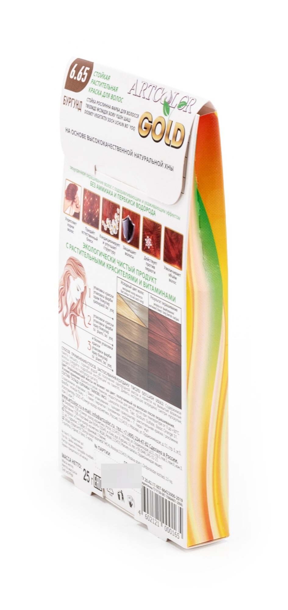 Артколор Gold Краска для волос тон 6.65 бургунд на основе натуральной хны без аммиака 25г / красящее средство