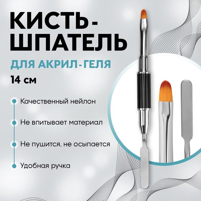Кисть-шпатель для акрил-геля, лепесток, 14 см, d= 6 × 9 мм, цвет чёрный/серебристый
