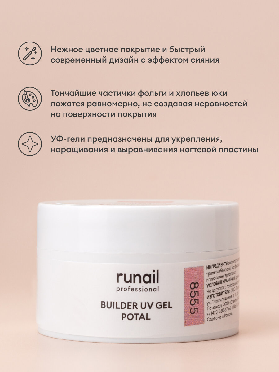 RuNail, BUILDER UV GEL POTAL - моделирующий УФ-гель с поталью №8555, 15 гр