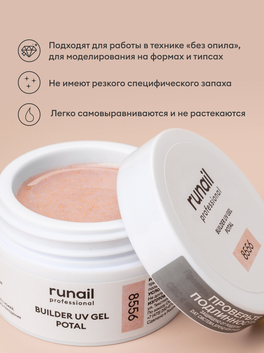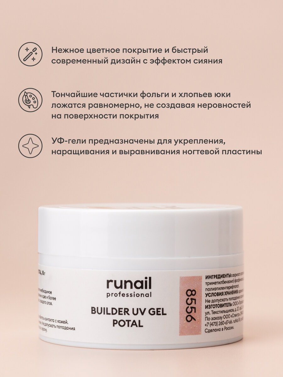 RuNail, BUILDER UV GEL POTAL - моделирующий УФ-гель с поталью №8555, 15 гр