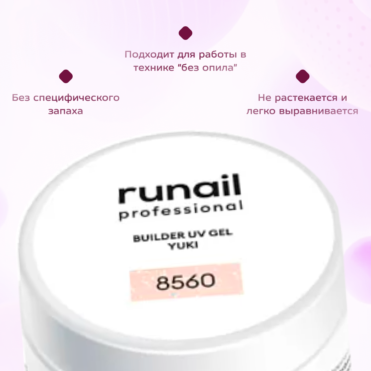 Купить Моделирующий УФ-гель Runail с хлопьями Юки BUILDER UV GEL YUKI №8560, 15 г