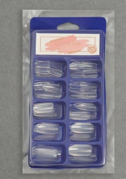 Queen fair Типсы для наращивания ногтей, 100 шт, форма овал, полное покрытие, в контейнере, цвет прозрачный