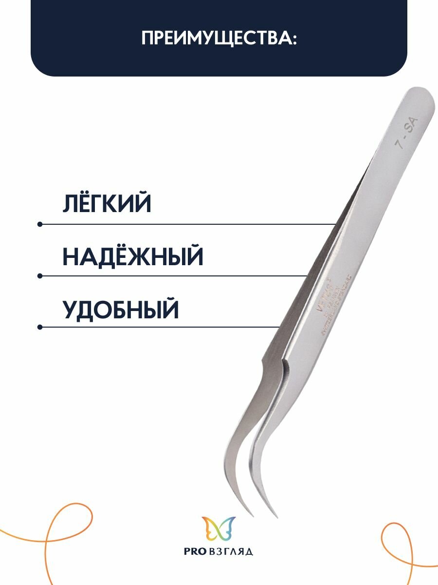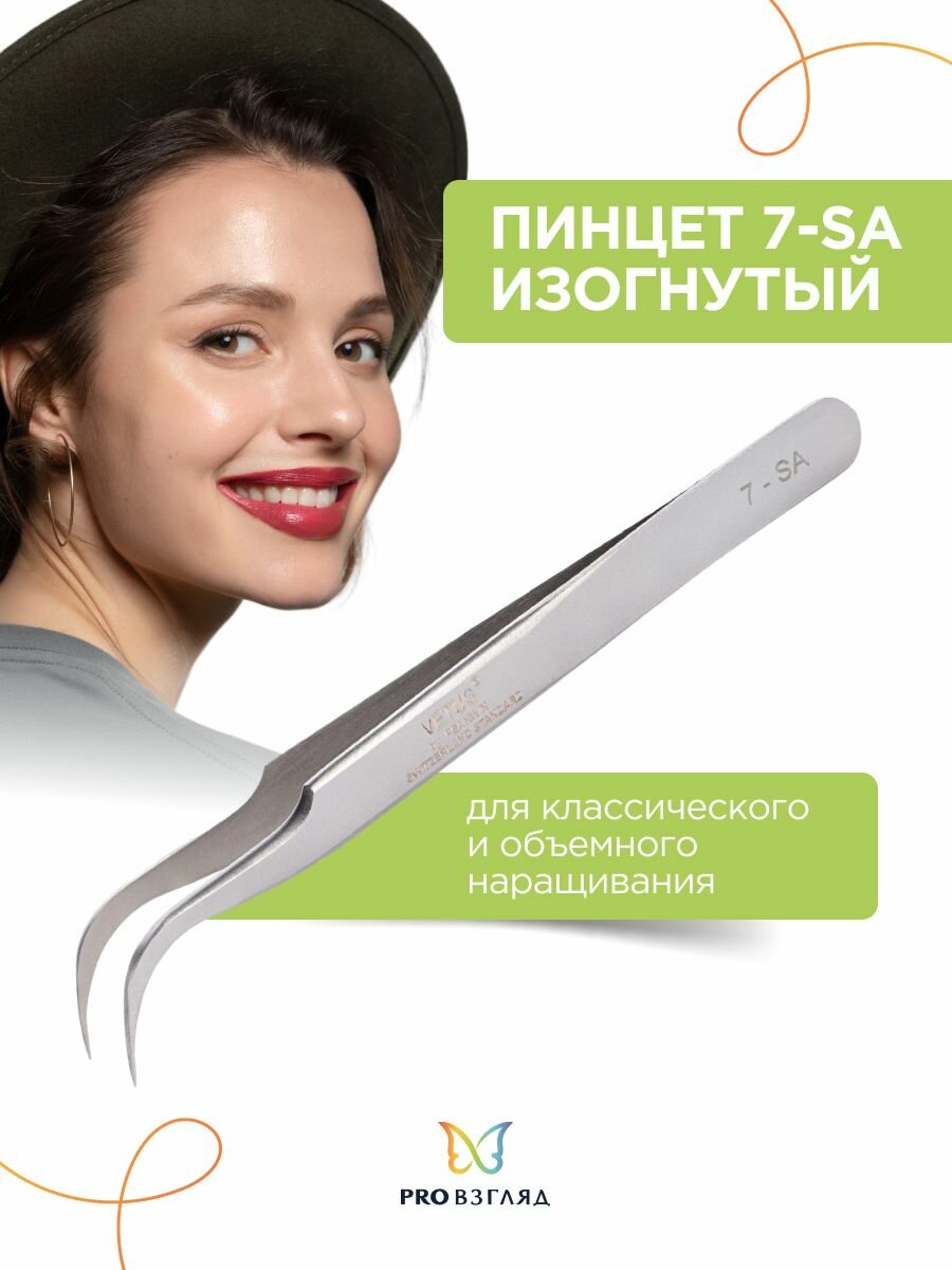 VETUS Пинцет для наращивания ресниц 7-SA изогнутый, 120 мм интересное: