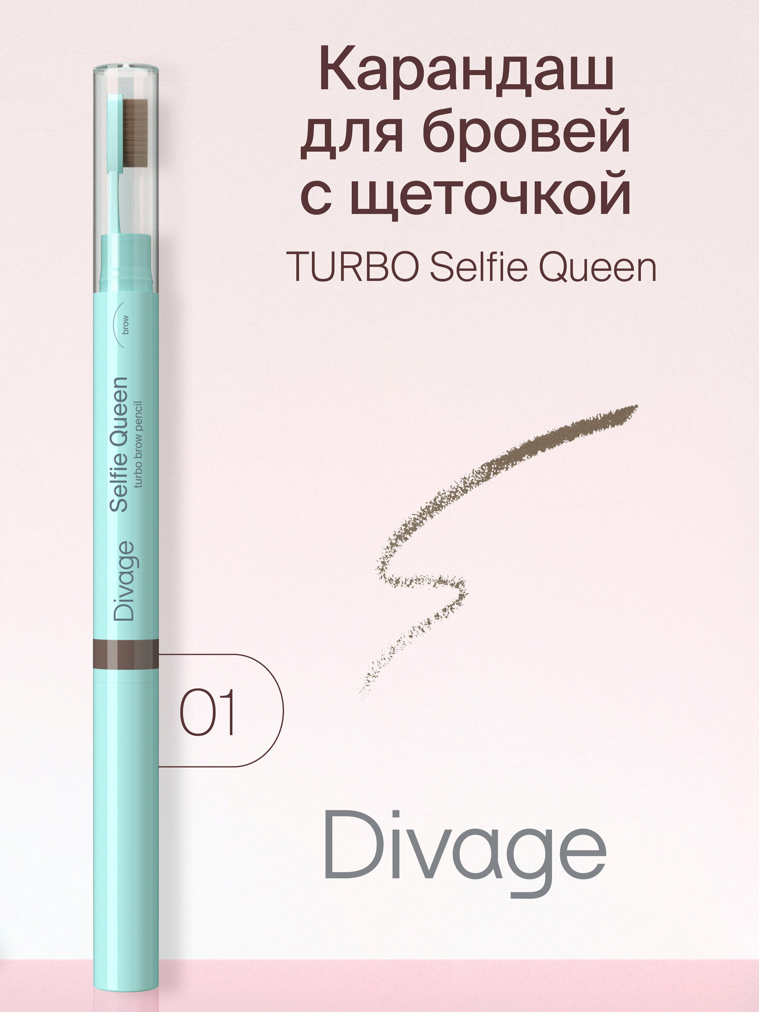 Divage / Диваж Карандаш для бровей Selfie Queen Turbo 02 для любого типа кожи с 18 лет коричневый с щеточкой 3г / декоративная косметика