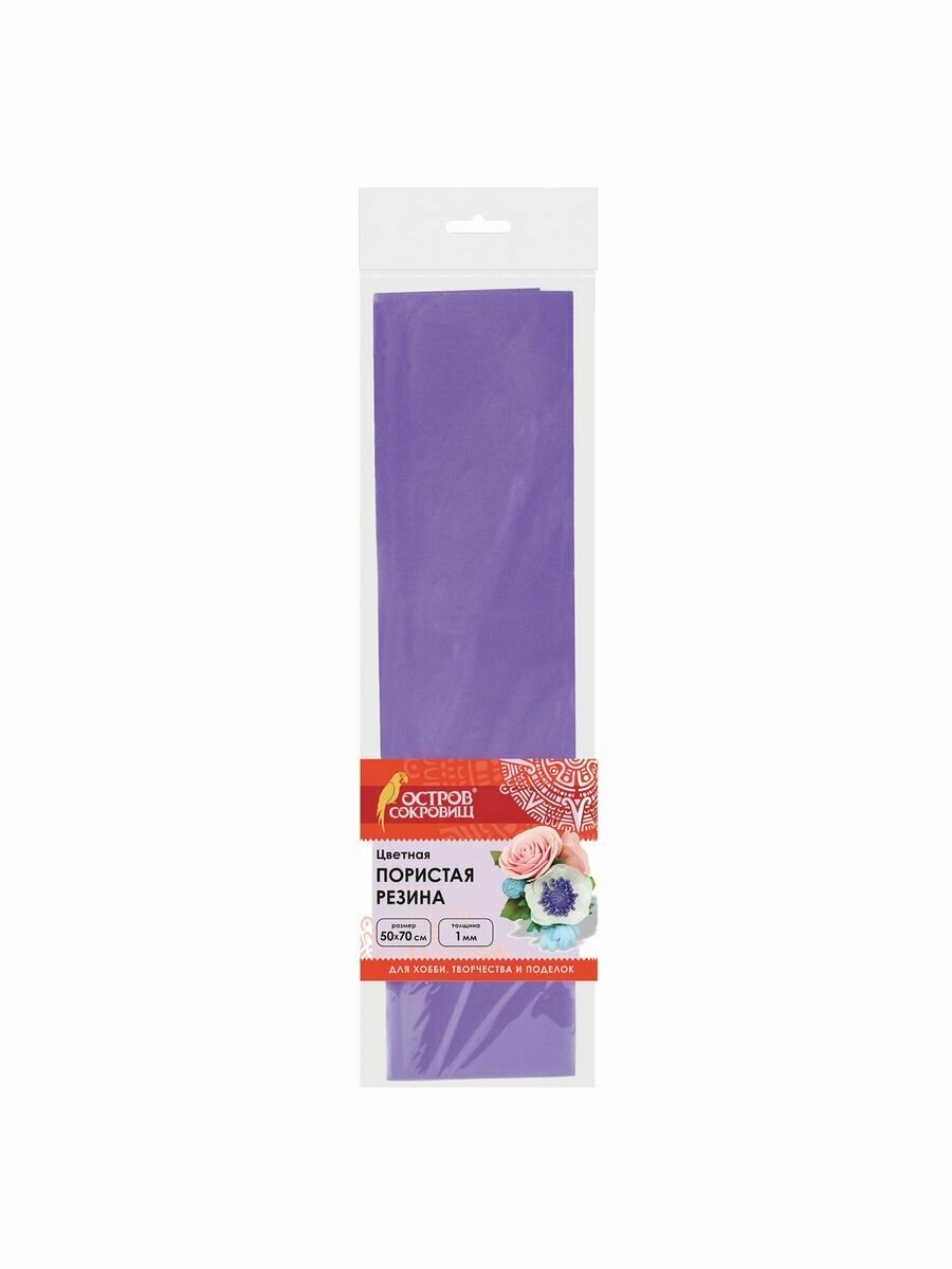 Пористая резина (фоамиран) для творчества, фиолетовая, 50х70 см, 1 мм, остров сокровищ, 661692 - 1 шт.