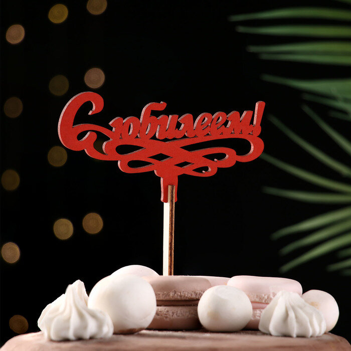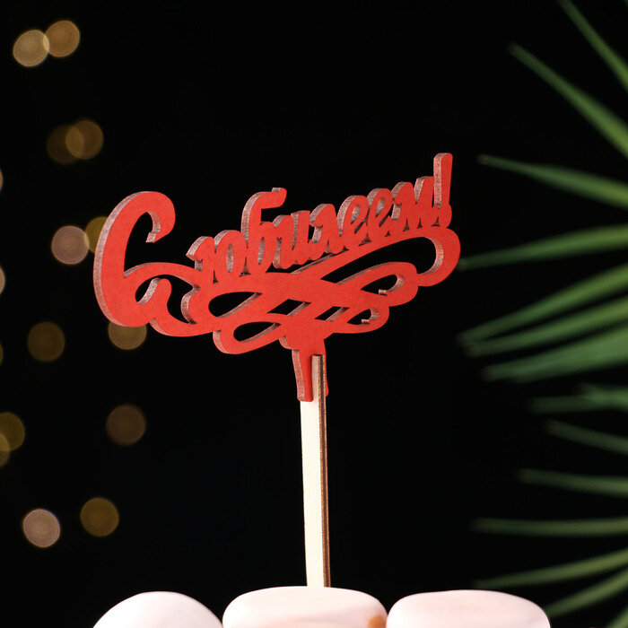 Купить Топпер деревянный "С Юбилеем!" красный 13х6 см 6029916