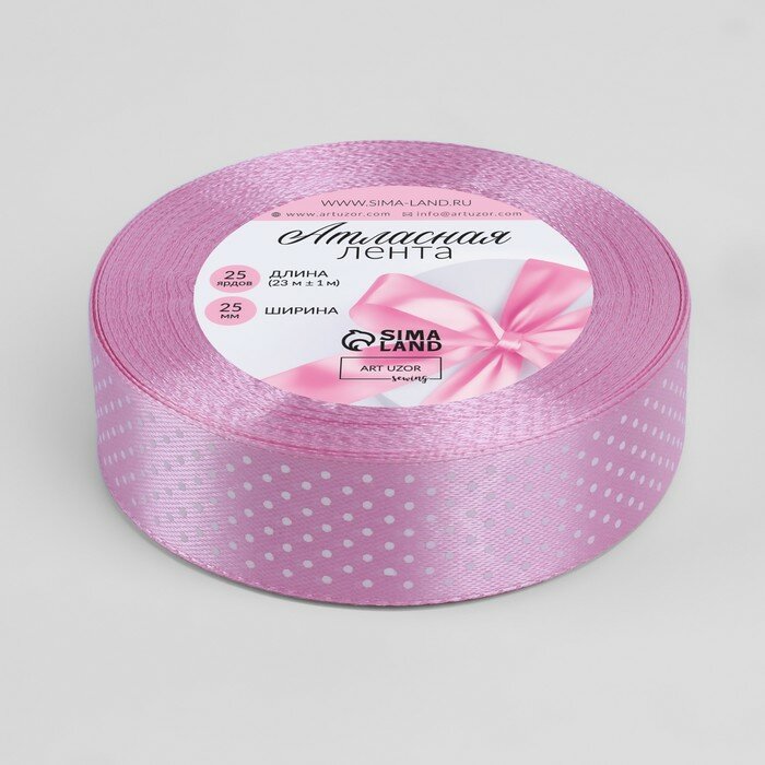 Лента атласная Горошек, 25 мм ? 23 1 м, цвет фиолетовый 045 Арт Узор 1902861 .
