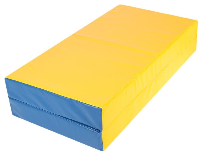 Мат гимнастический складной спортивный для шведской стенки мягкий детский 4 секции 100х200х10 см, толщина 10см. Цвет синий/желтый