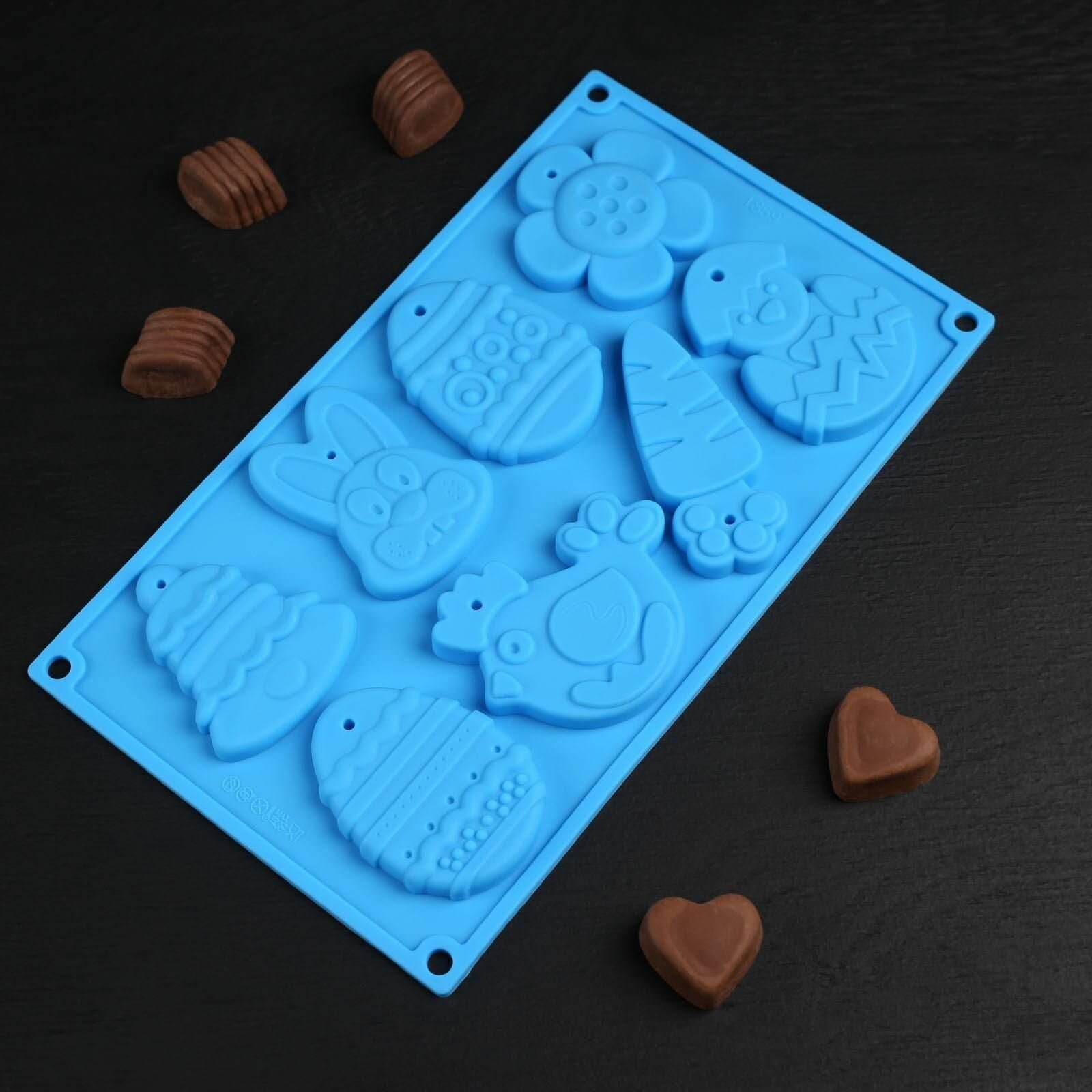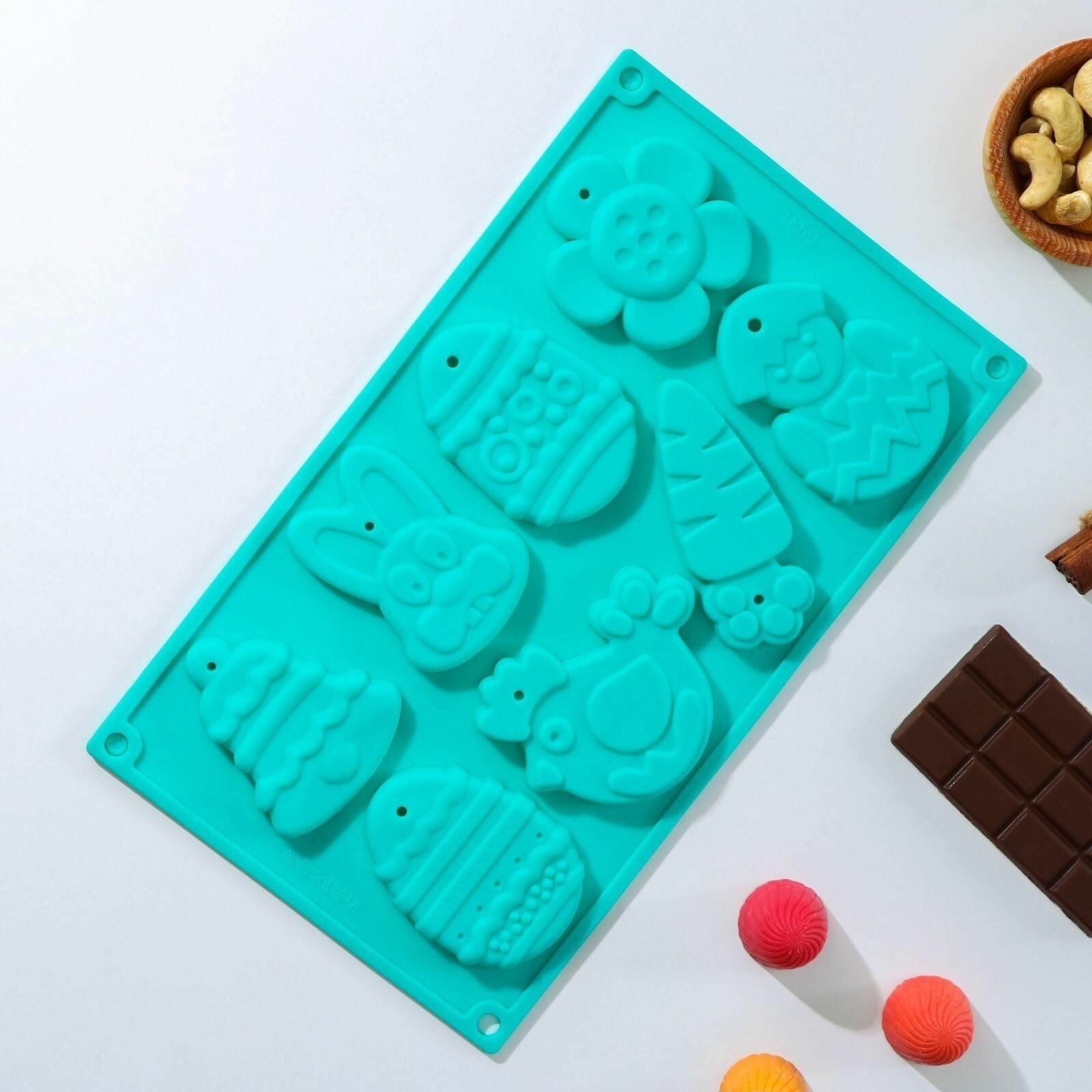 Купить Форма силиконовая для шоколада «Животные», 30×17×1 см, 8 ячеек (7,7×6 см), цвет микс