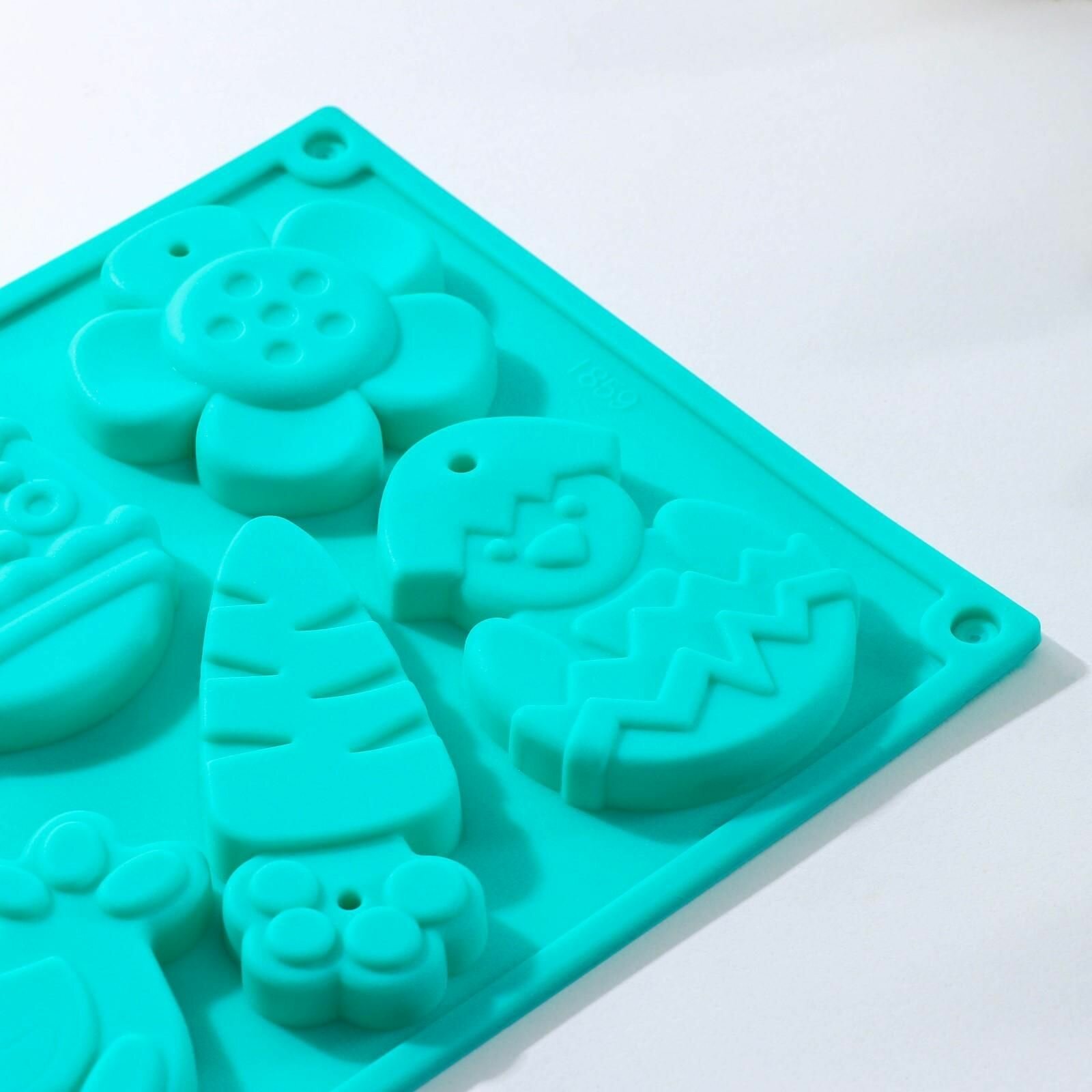 Форма для украшений Доляна «Животные», силикон, 30×17×1 см, 8 ячеек (7,7×6 см), цвет микс