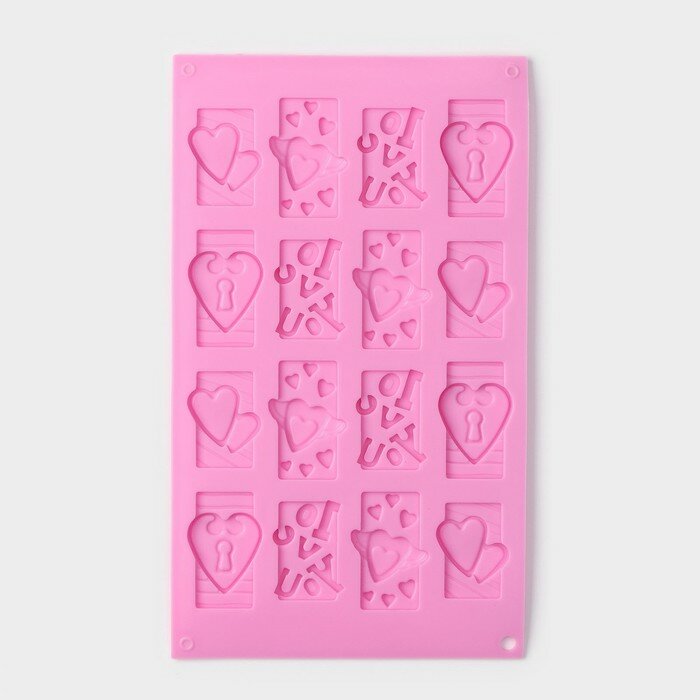 Форма для конфет и шоколада Доляна «Любовь», силикон, 28,7×17,4 см, 16 ячеек (4,7×3,8 см), цвет микс