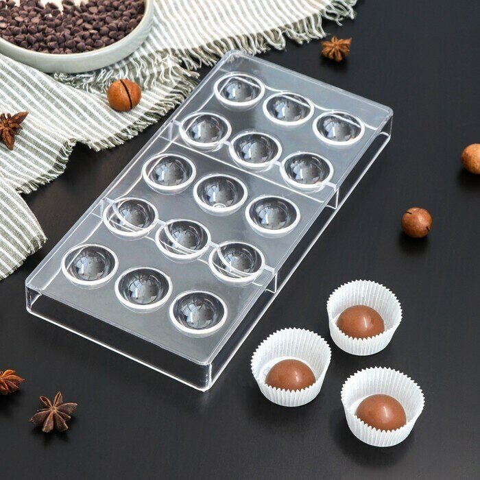 Купить Уценка Форма для шоколада и конфет «Полусфера», 28×14 см, 15 ячеек, цвет прозрачный