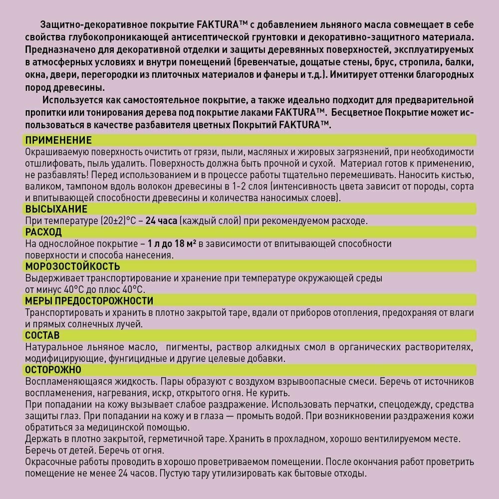 Faktura / Фактура покрытие (9 л) защитно-декоративное с льняным маслом, ионами серебра, тик