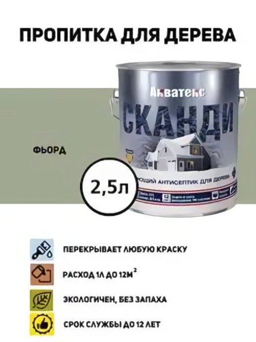 Кроющий антисептик для древесины акватекс Сканди Фьорд 2.5 л