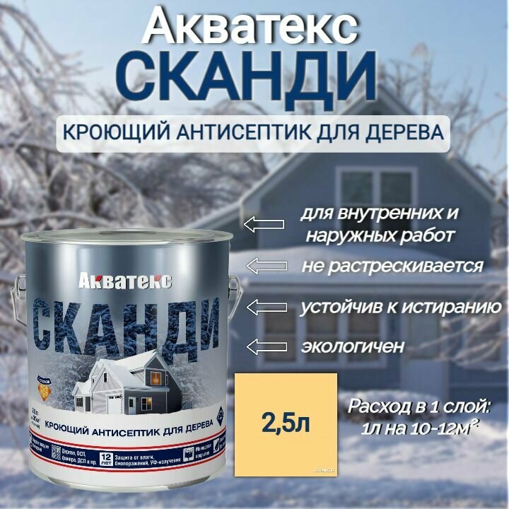 Антисептик кроющий для дерева Акватекс сканди 2,5 л Топленое молоко
