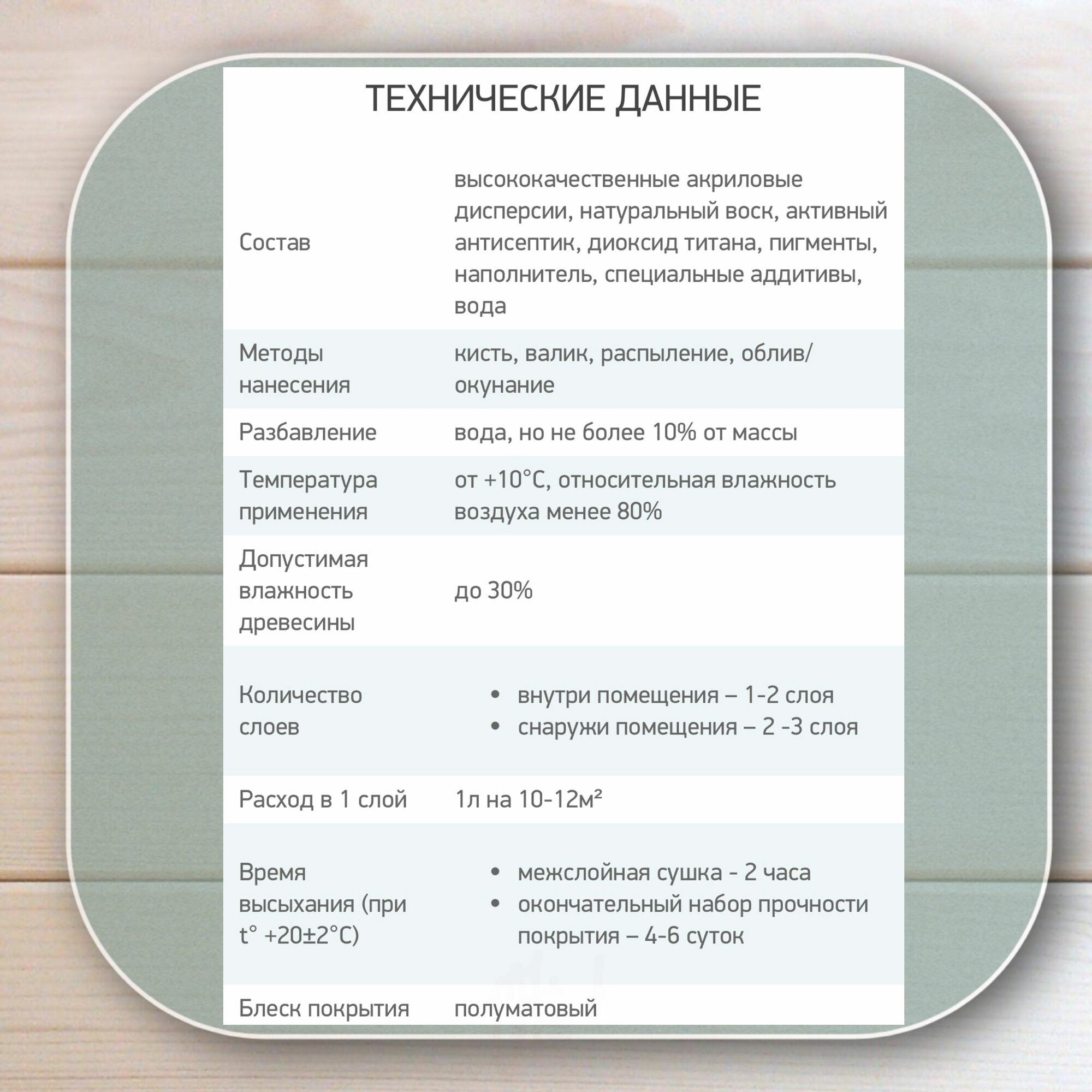 | Плюсы: | Плотное покрытие древесины даже в один слой!!!! |