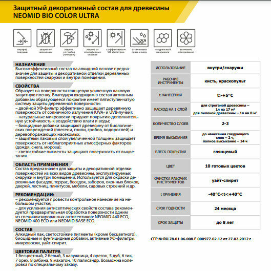 | Плюсы: | Неплохо, совсем неплохо. Использовал как альтернативу PINOTEX...Пять лет использовал только PINOTEX, но уж больно подорожал. Надеюсь, Neomid не подведёт. Время покажет. |