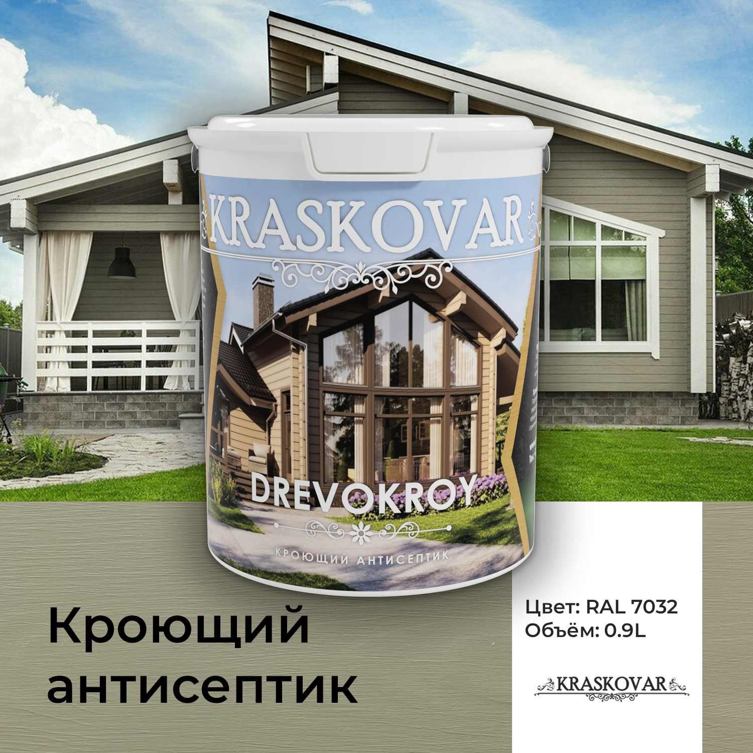 Антисептик кроющий Kraskovar Drevokroy RAL 7032 9л
