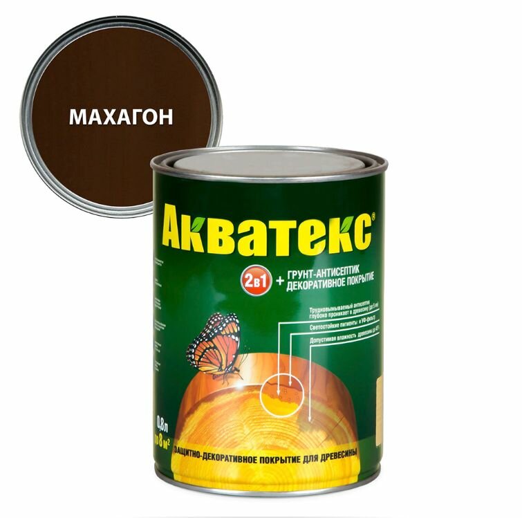 Защитно-декоративное покрытие Акватекс 2 в 1 для древесины алкидное полуматовое лессирующее, махагон 20л