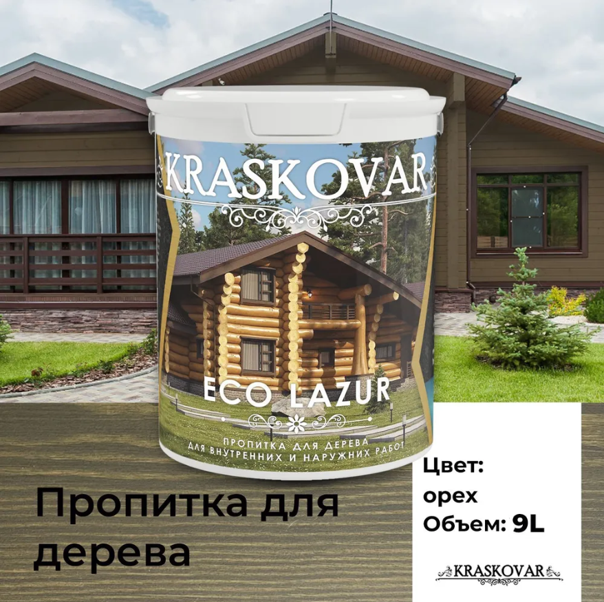 Пропитка для дерева Kraskovar Eco Lazur, орех 9л