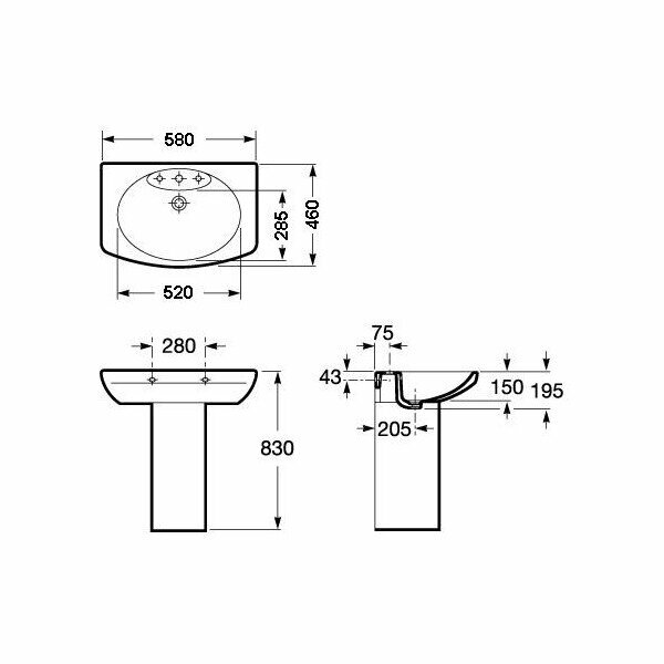 Подвесная раковина Roca Dama Senso 58х46х19,5см, арт. 327512000, санфарфор