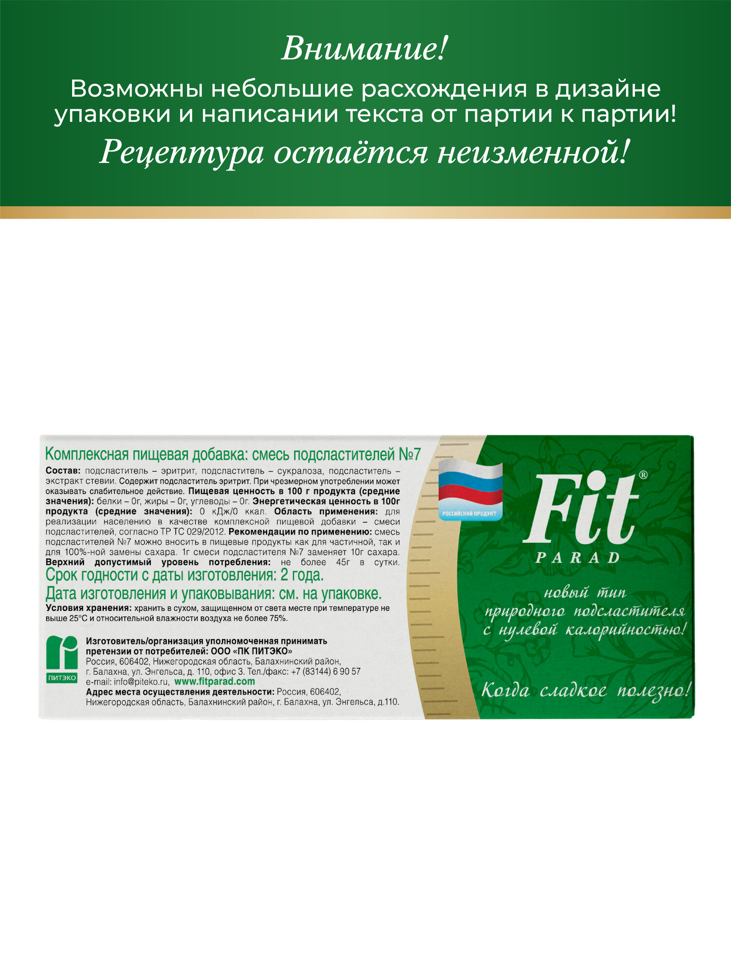 Fit Parad Заменитель сахара на основе эритрита и стевии №7, 60г, 60шт