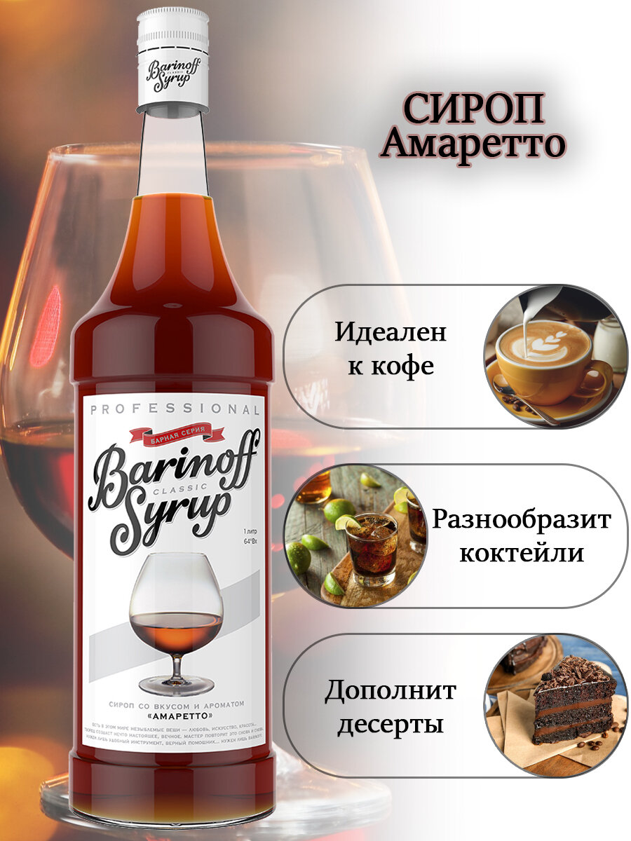 Сироп Barinoff Амаретто, стекло, 1л интересное: