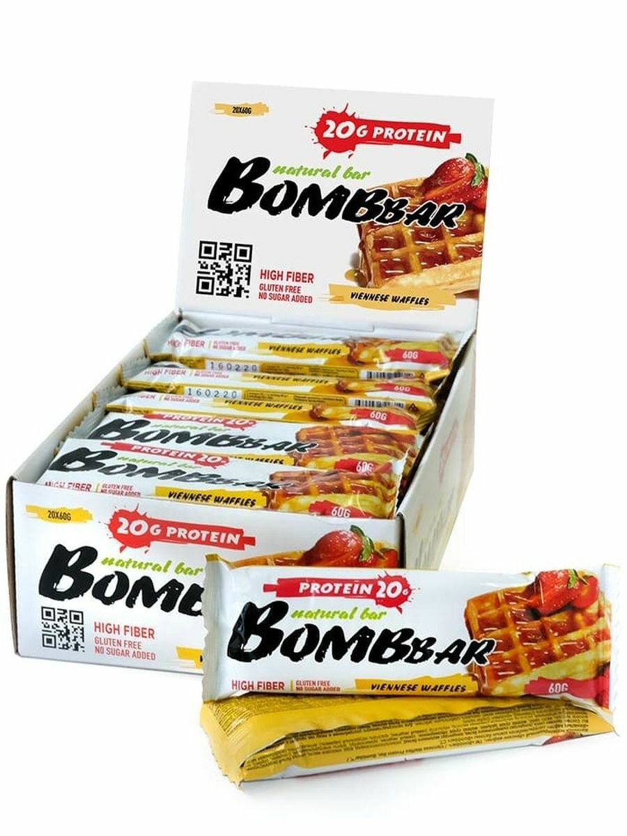 Протеиновый батончик BOMBBAR Protein Bar, Венские вафли (20шт по 60г)