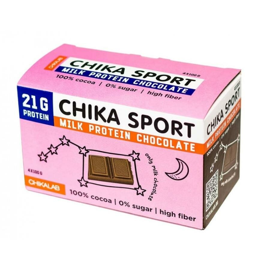 Купить Протеиновый шоколад без сахара Chikalab Молочный шоколад, 4 х 100г