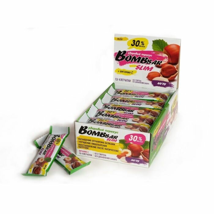 Протеиновый батончик Bombbar Protein Bar Slim 30x35 г, Фундук-арахис